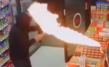 The image captures a moment so sudden and extreme that it feels almost unreal. Inside a small convenience shop, shelves packed with everyday goods, a burst of fire cuts through …